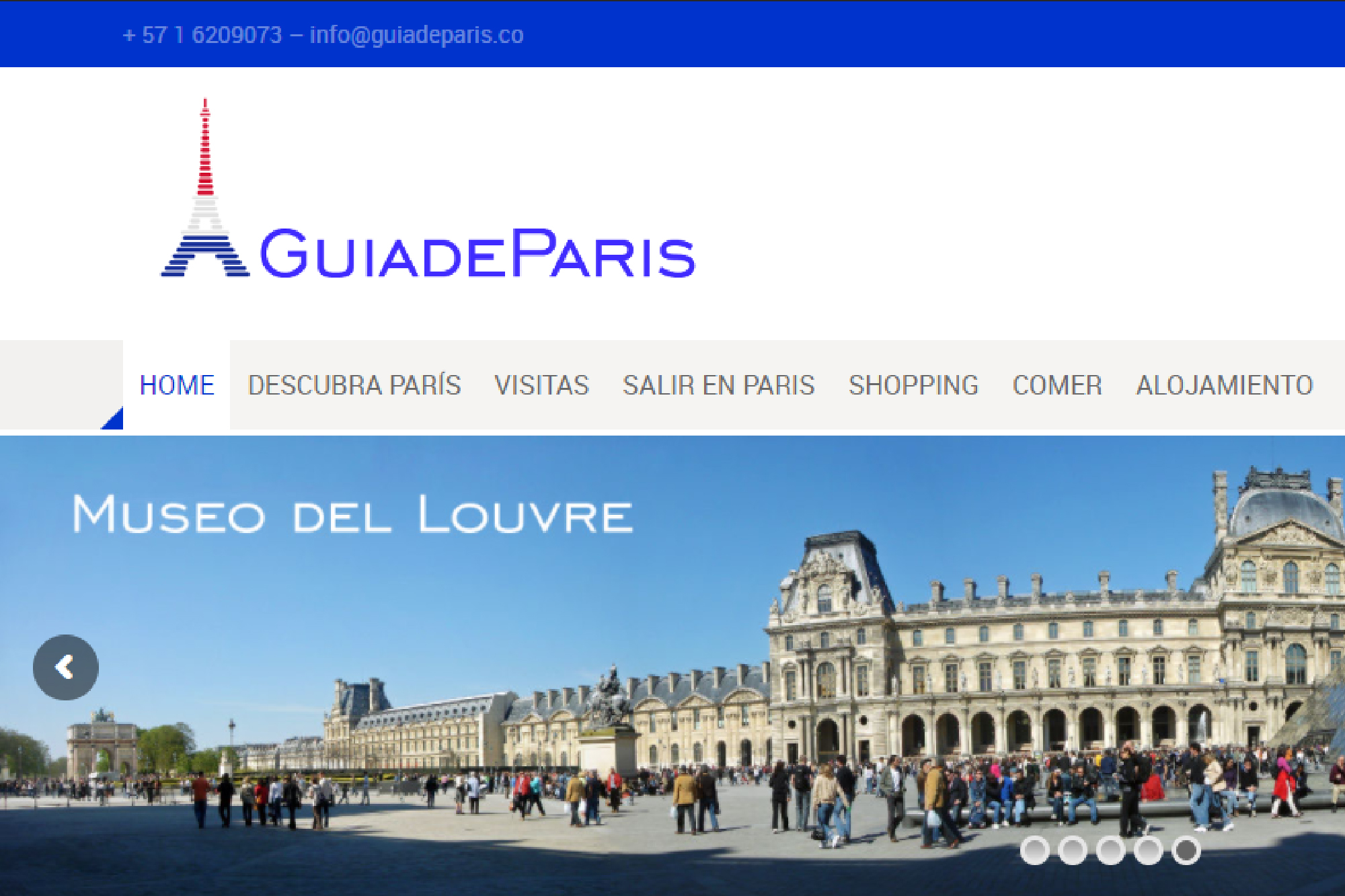 El sitio web guiadeparis.co es básicamente un portal que brinda información a turistas latinoamericanos sobre los diferentes sitios de interés ya sean culturales, gastronómicos, de moda y más para todo aquel interesado en conocer Parés desde varios puntos de vista. Se brinda información de los lugares de alojamiento, opciones de transporte, tours por la ciudad y lugares de diversión para todos los presupuestos y gustos.